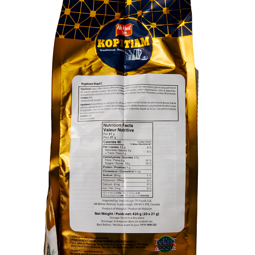 Ingredients: Non-dairy creamer, Instant coffee powder, Sugar