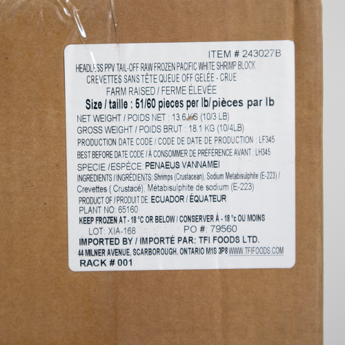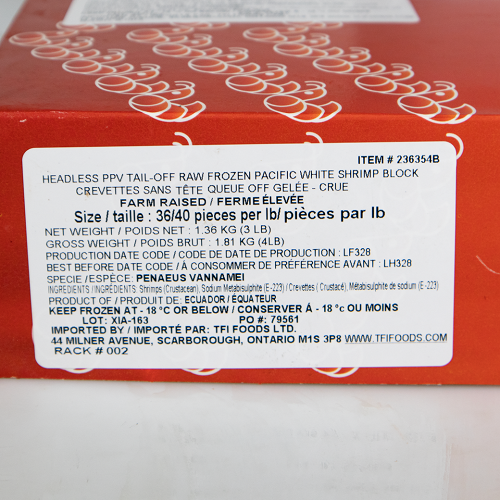 Ingredients: Shrimp, Sodium Metabisulphite